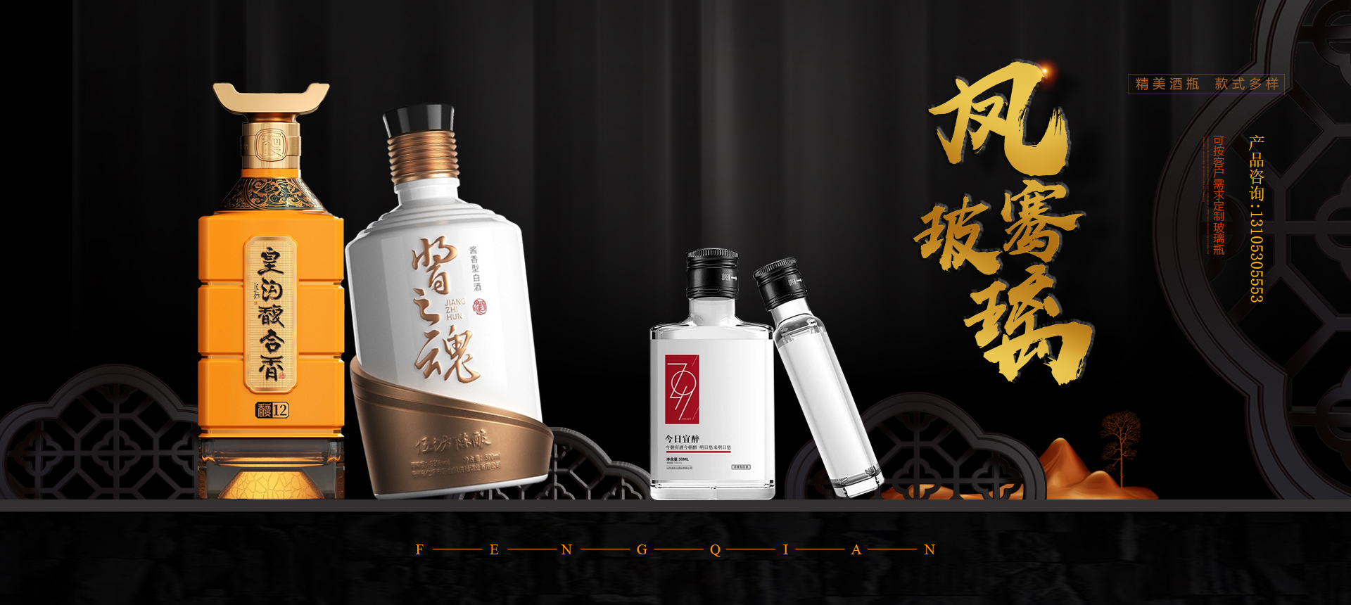 公司主要生產經營晶白料酒瓶、高白瓶、噴涂瓶、小酒瓶、電鍍瓶、乳白瓶、酒壇、果酒瓶等玻璃瓶系列。我公司生產的玻璃瓶品種多、質量好、價格低,不但可以在短時間內設計出新瓶型及制成新模具,并且還可以根據客戶的需求來進行設計制作,使得我公司所生產的玻璃瓶產品受到市場的一致青睞。